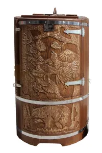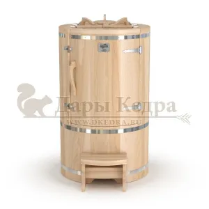 Круглая фитобочка из кедра - это мини парная, которую можно использовать не только в спа-салонах, но и дома. Такая модель наиболее компактна и мобильна. Толщина стенок составляет 40-45 мм, что позволяет увеличить срок службы изделия. Фитобочка оборудована откидными створками, дверцей и отверстием для головы. Во время парения человек сидит внутри кедровой бочки, а голова находится снаружи. Благодаря этому исключается возможность перегрева. Подлокотники из кедра, встроенные ручки на створках и двери делают эксплуатацию более удобной.