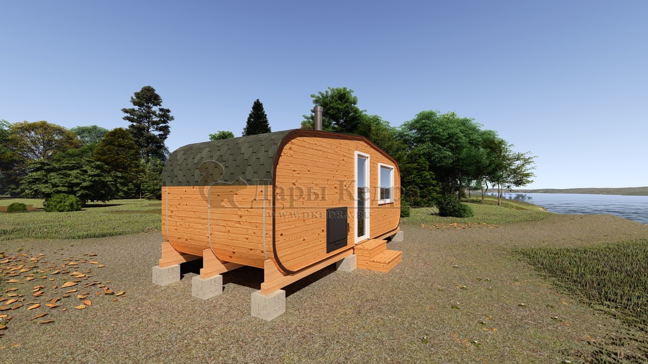 Мобильная баня-бочка с каждым днем набирает все большую популярность благодаря её возможной транспортировки куда угодно: на отдых в лесу, на рыбалку или на побережье реки