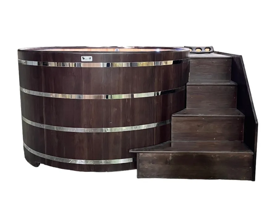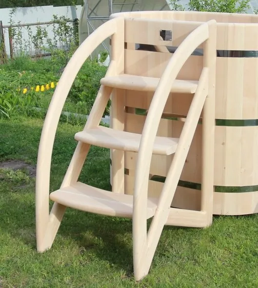 Это треугольная емкость для воды из кедра. Она предназначена для отдыха и охлаждения тела после банных процедур. Купель устанавливается в угол помещения, что идеально для не больших пространств. Так же подходит для уличного использования. Угловая купель оснащена лавочками, приставной и внутренней лестницей из кедра. За счет стяжных болтов обручи из нержавеющей стали плотно прилегают к кедровой купели. Это позволяет равномерно распределять нагрузку воды и сохранить форму изделия в период эксплуатации. При правильном уходе угловая купель для бани не рассыхается и не подвергается гниению.