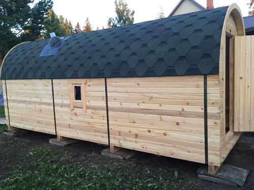 Нашел в интернете такую баню-бочку, решил рискнуть и заказать аж шестиметровую баню. Семья у нас большая, народу много, часто приезжают родственники в гости с ночевкой, поэтому большая баня для нас - это просто необходимость, а не прихоть. Баню изготовили в течение трех недель, потом доставка на место. Собирал сам с братом, примерно пару выходных ушло у нас на сборку. Возможно, профессионал и собрал бы за день, но мы так быстро не умеем работать))) Поэтому не рассчитывайте, что при самостоятельной сборке у вас уйдет день))) Баня получилась шикарная, внутри и снаружи, просто сказка! Топится невероятно быстро для такого размера, я сначала топлю "по-черному" для себя, потом уже по мере остывания идут все остальные, кто не любит жару...В общем, все в восторге!!!
